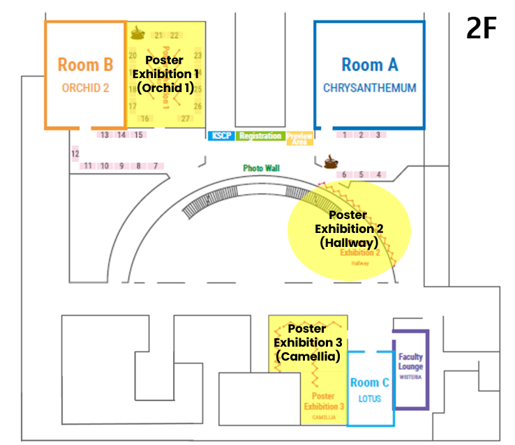 Posters will be exhibited in various areas, including Orchid 1 on the 2nd floor of the Grand InterContinental Seoul Parnas, as well as the Hallway and Camellia.